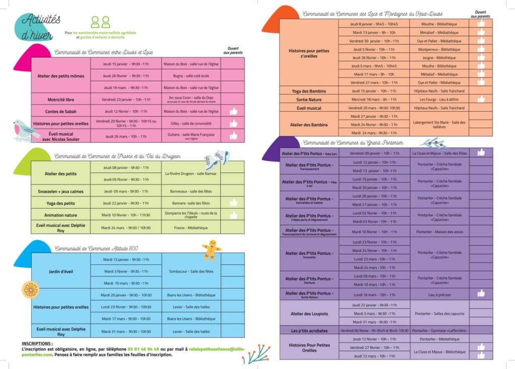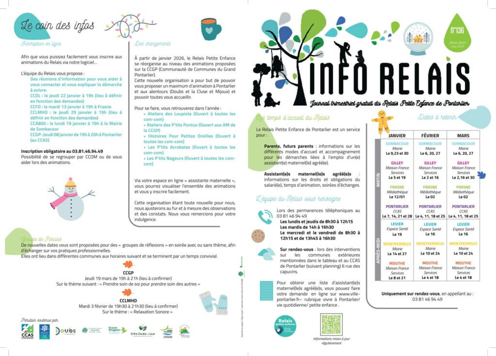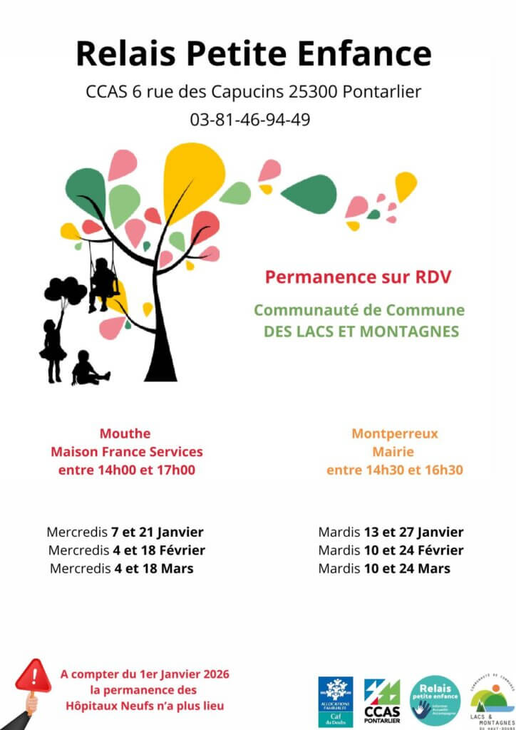 La Communauté de Communes a conclu en 2019, une convention avec le Centre Communal d’Action Social de Pontarlier (C.C.A.S.) pour la mise à disposition, à son profit, des services du Relais Petite Enfance.